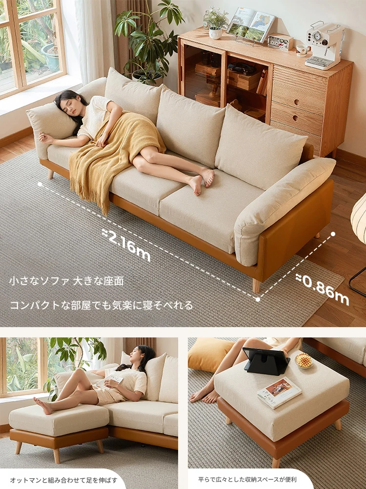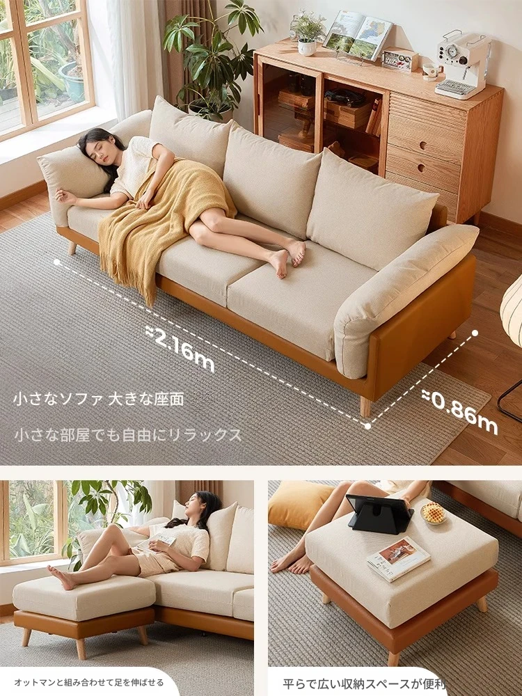 林氏家具新中式リビングルーム用天然木製レザーソファ 小型住宅向け ホワイトアッシュ材の直置き家具 林氏木業NR - コンパクトで洗練されたデザインで、お部屋をスタイリッシュに演出!
