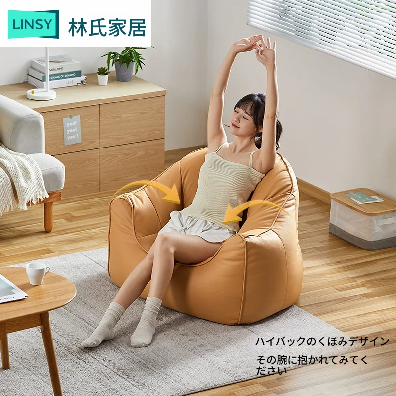 林氏木業のモダンでシンプルなリラックスソファチェア - コンパクトで洗練されたデザイン、寝室やバルコニーに最適な一人用ビーズソファS120。心地よいひとときをあなたの空間に。