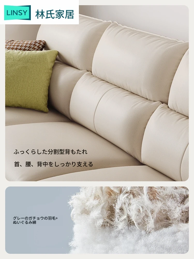 リンシ家居のモダンシンプルな本革ソファ - 高級牛革使用のピアノキーソファで、リビングを洗練された雰囲気に。シンプルさと優雅さを両立したデザインをお楽しみください。林氏木業の職人技が光る一品です。