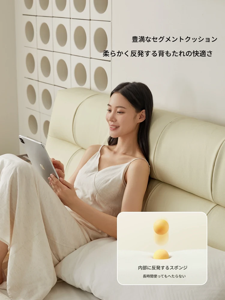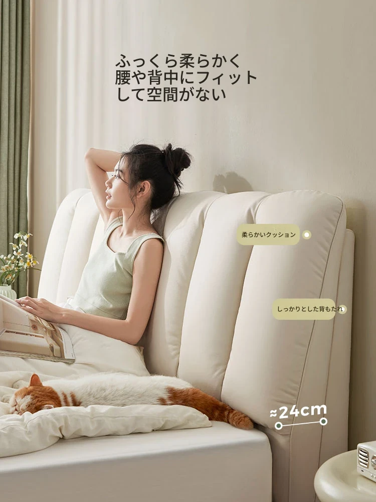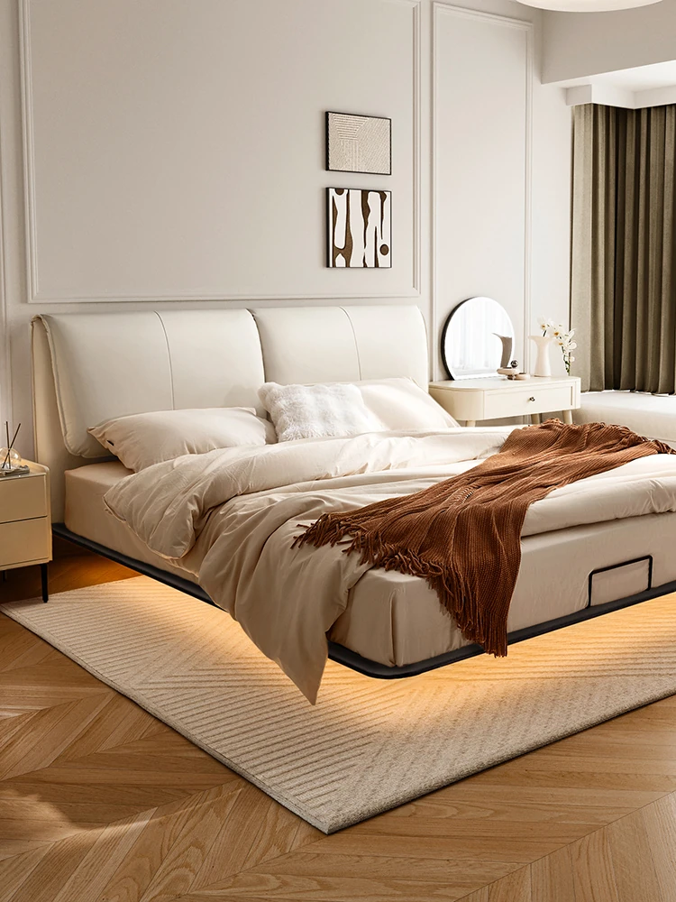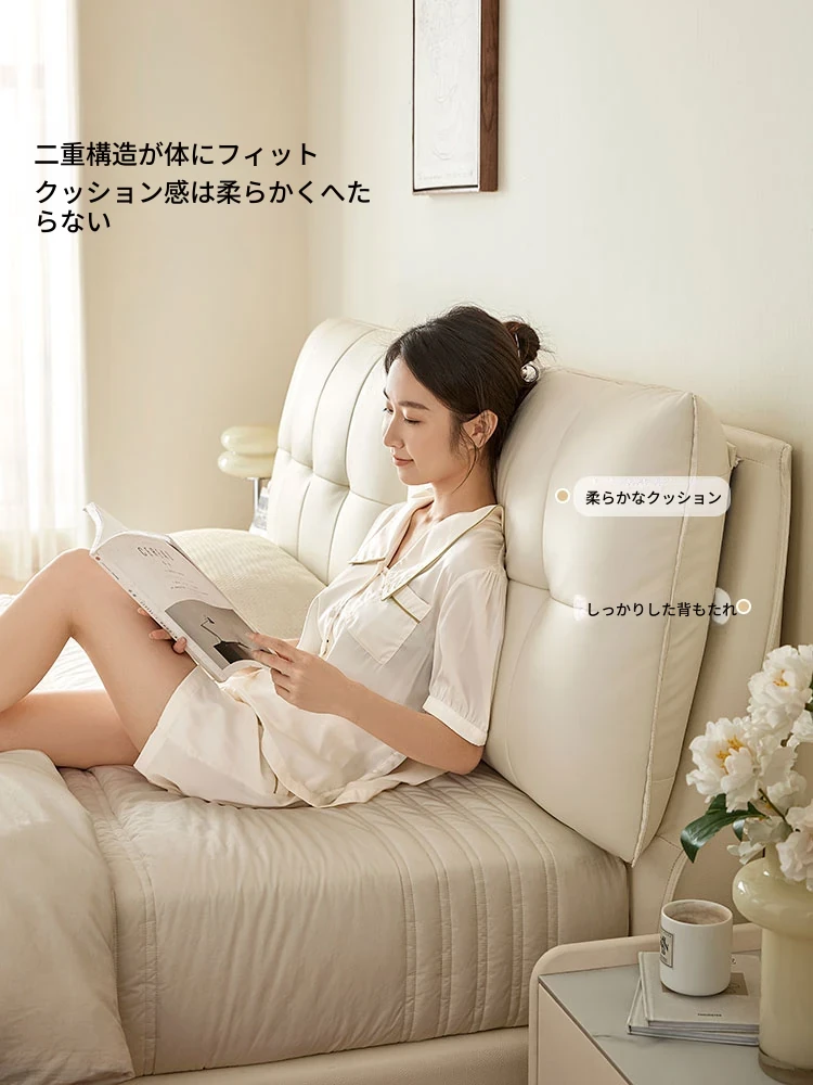 リンスホーム 現代的でシンプルなクリーム風プーフ真皮ベッド 主寝室用 ダブルベッド 軽 luxe 高級フロアタイプ TPC156 で優雅な睡眠を体験しませんか?