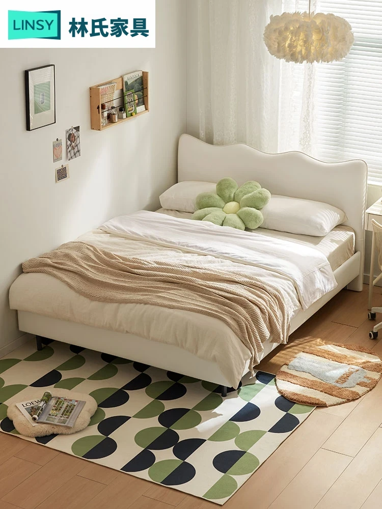 2.22KC2025新作猫の爪デザイン!女の子のお部屋にぴったりなクリームカラーの1.5mフロアベッド - 林氏家具で夢のようなリラックスタイムを実現!