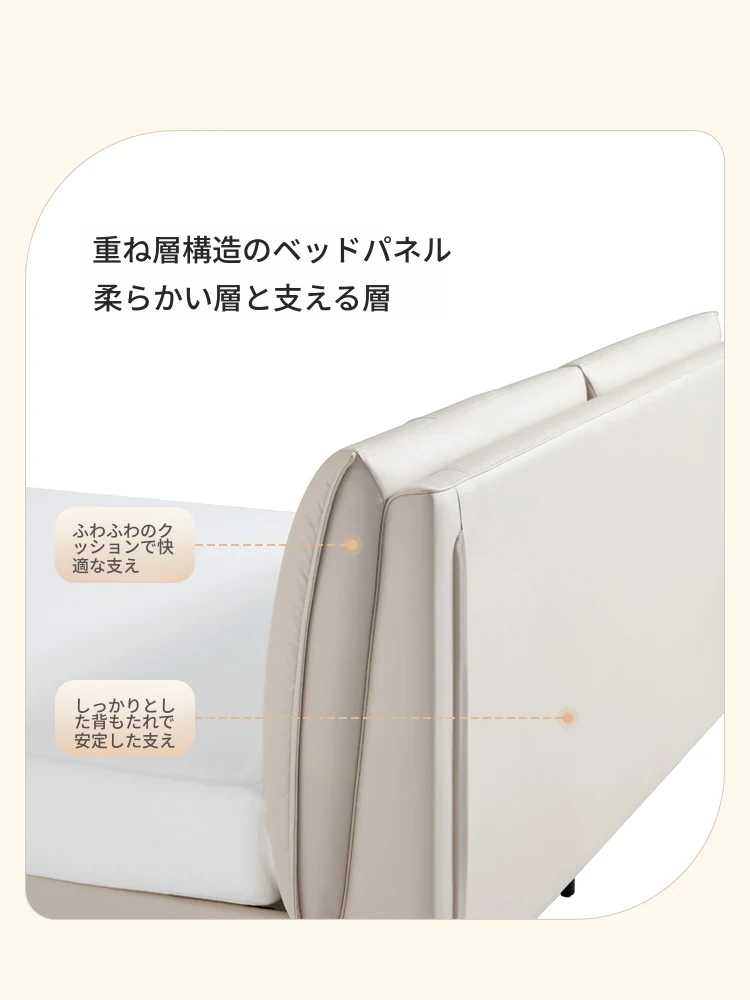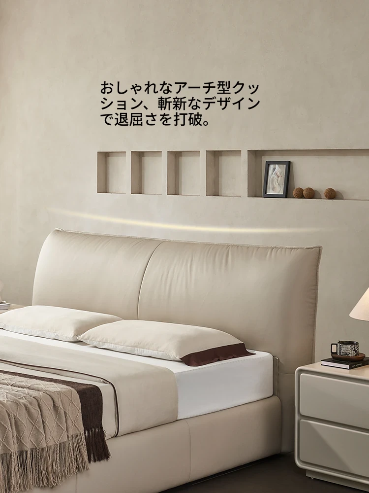 リンシ家居のクリーム風デザイン本革ベッド - 主寝室にぴったりな高級感あふれるソフトパッケージダブルベッド 2025年新モデル登場!快適な眠りをサポートし、スタイリッシュな空間を演出します。