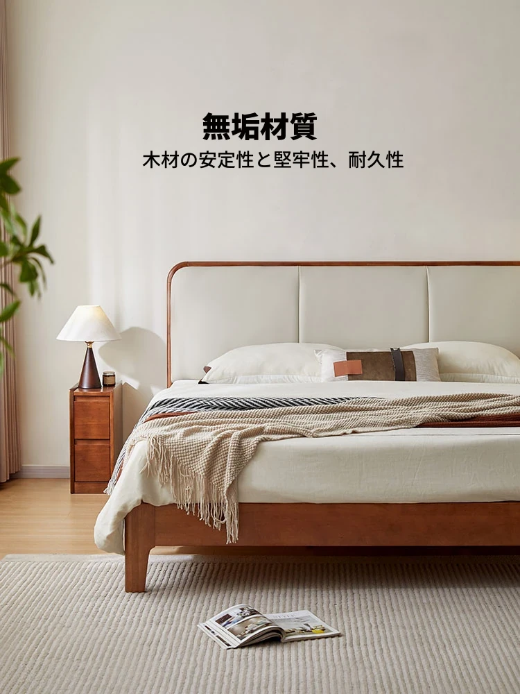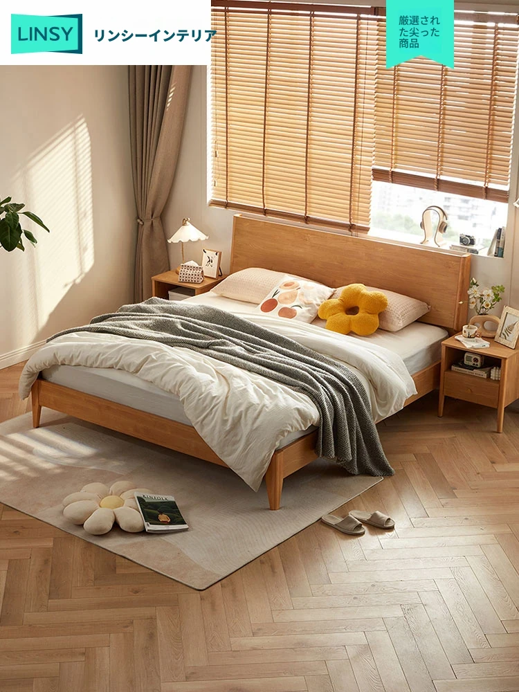 リンシホーム イタリアンミニマリスト 無垢材フレームベッド 寝室用 ホーム用 サスペンションダブルベッド セット販売 - リンシウッドの品質で夢の睡眠を実現!