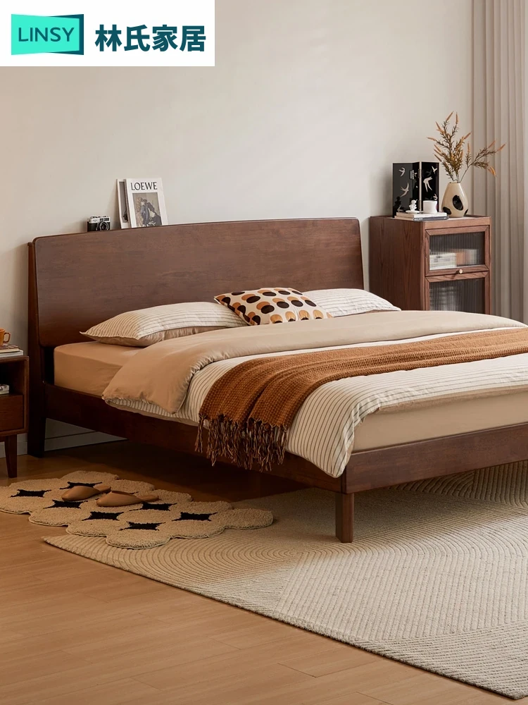 林氏家居のオシャレな無垢材ダブルベッド - 1.5mの広々としたデザイン、頑丈な足、主寝室にぴったり!佛山の高品質家具、林氏木業のスタイルをお楽しみください。