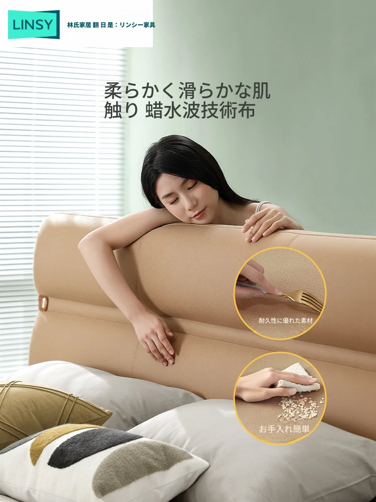 林氏家居クリーム風テクノロジー布製ベッド イタリアンシンプルデザイン 主寝室用ソフトパッケージ ダブルベッド 林氏木業BC199 夢の快適さをあなたに提供!
