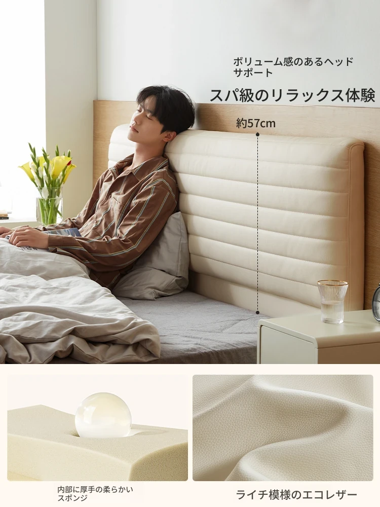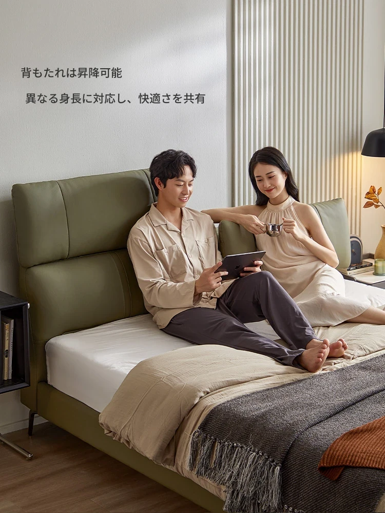林氏家具のモダンな本革ベッド - 高級感溢れる主寝室用ソファーベッド、新型2025年モデル!快適な柔らかなパッドで、あなたの眠りを極上に。林氏木業 TPC089