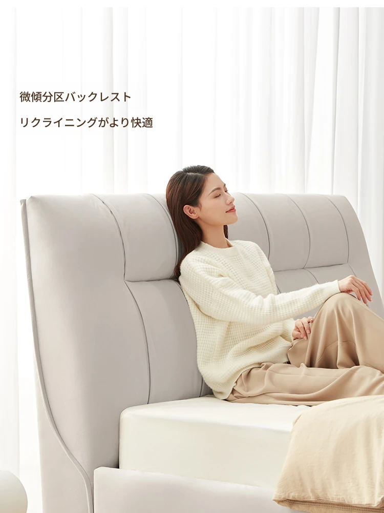 林氏家居のクリーミーカラー高品質布製ベッド - 主寝室に最適!洗練されたデザインと機能性を兼ね備えた女性にぴったりのスタイリッシュなリビング空間を演出。林氏木業BC230モデル。