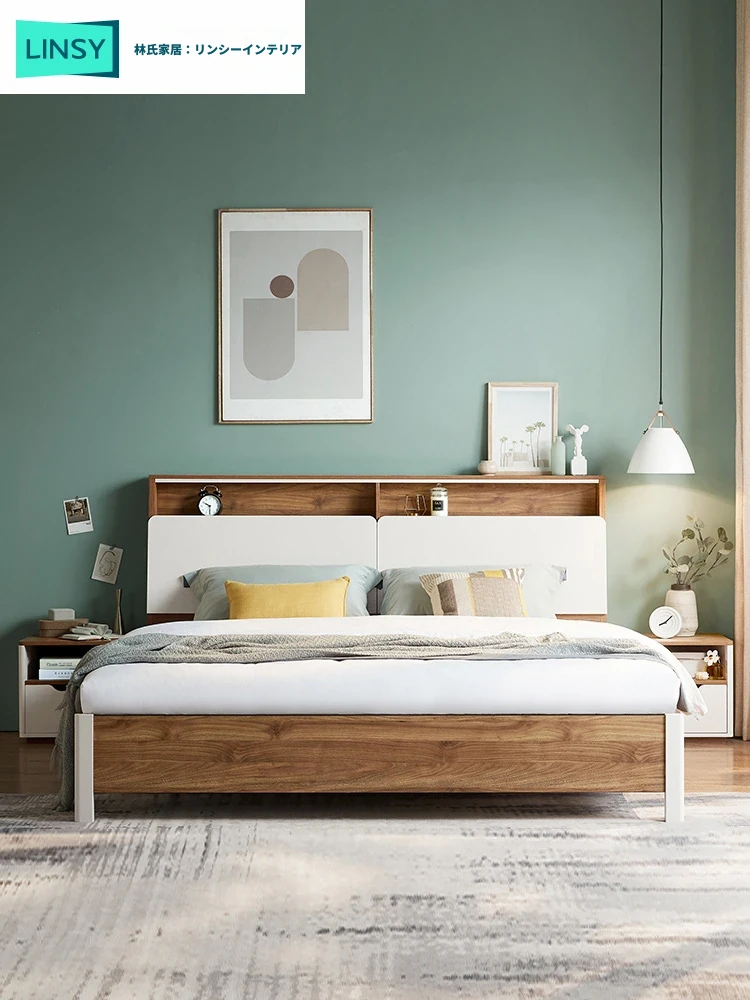 リンシ家居のモダンでシンプルなヘッドレスダブルベッド|主寝室にも最適な高品質家具|スタイリッシュなデザインで快適な眠りをお約束します!