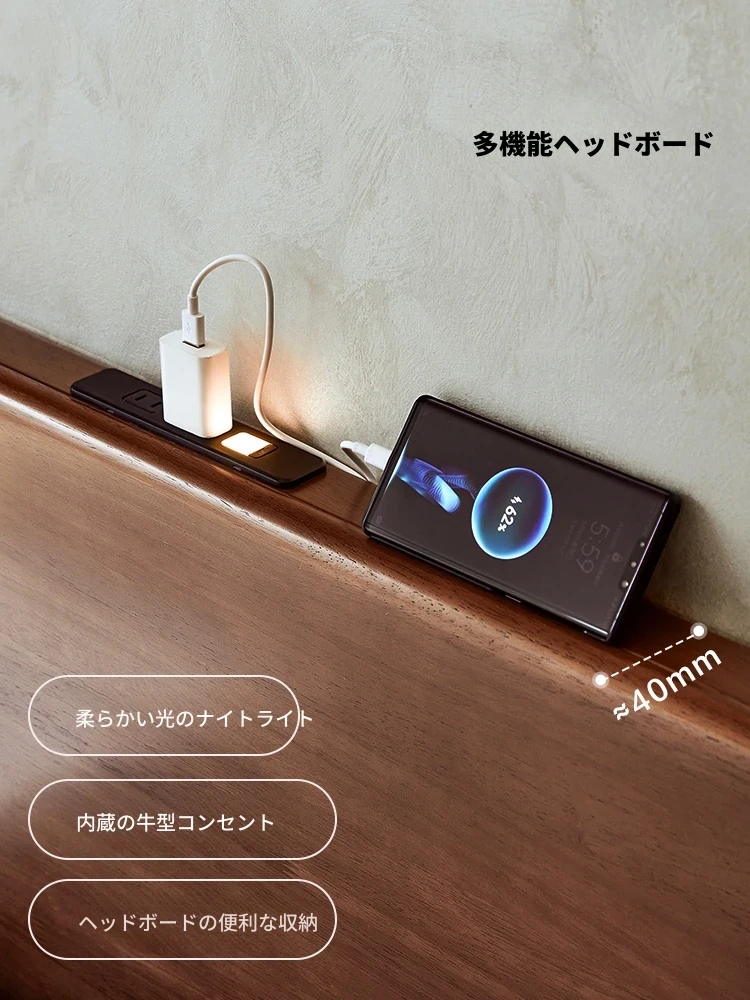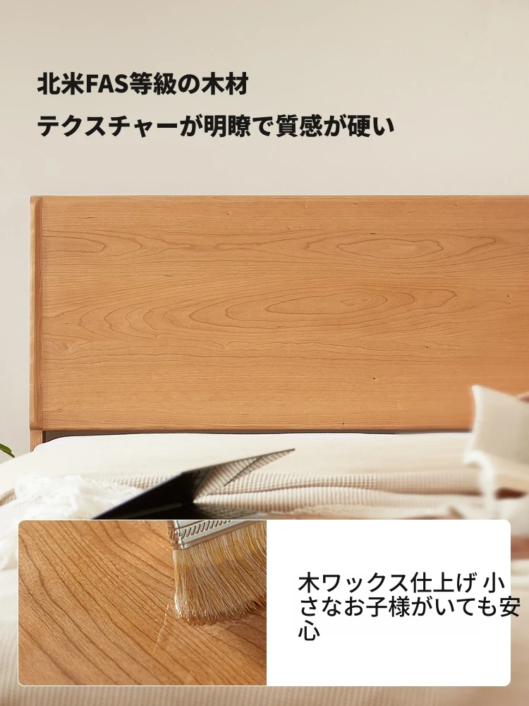リンズホーム全木製フロートダブル収納ベッド - 寝室にぴったり!高品質チェリーウッド使用のスタイリッシュなデザインで、豊富な収納スペースを実現。安らぎのひとときを提供します。