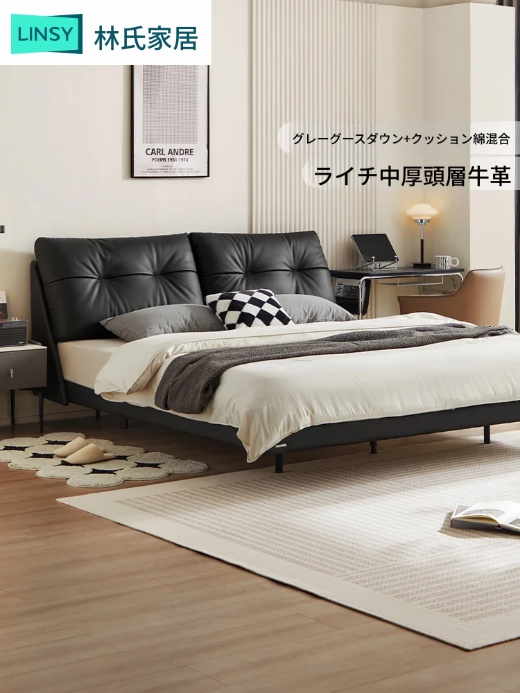 リンシー家具2025年新作!本革製ピアノキー2人用ベッド - 高級感あふれる主寝室用大床!林氏木業のクオリティで、あなたの眠りを格上げします。