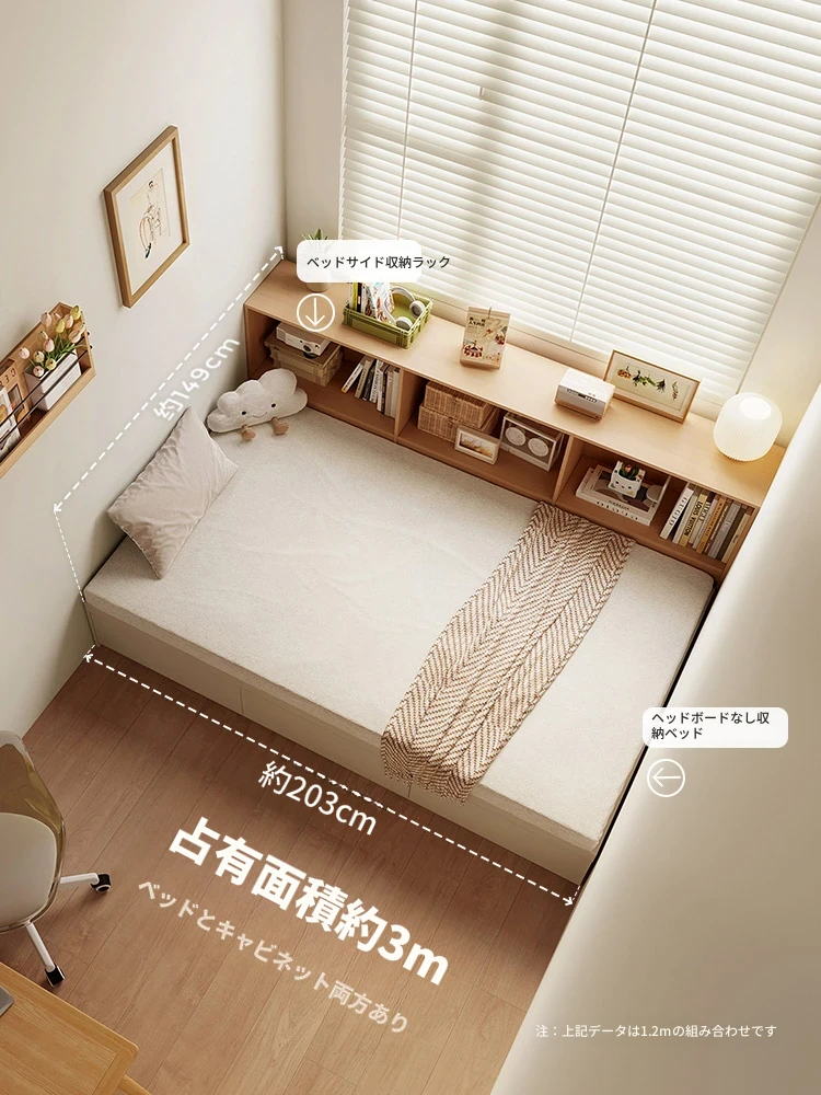 リンシー家具 地台ベッド 小型住宅向け シングルベッド 1.2m 畳ベッドフレーム 収納付きヘッドレス 木製設計でスペースを有効活用!スタイリッシュなインテリアにぴったり!