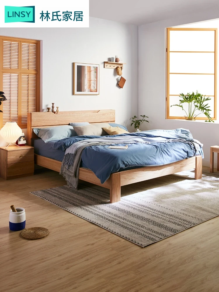 林氏家居オーク無垢材1.8mダブルベッド|モダンシンプルな北欧デザインで、寝室をスタイリッシュに演出するCR4Aモデル。1.5mサイズもご用意!快適な睡眠をサポートします。