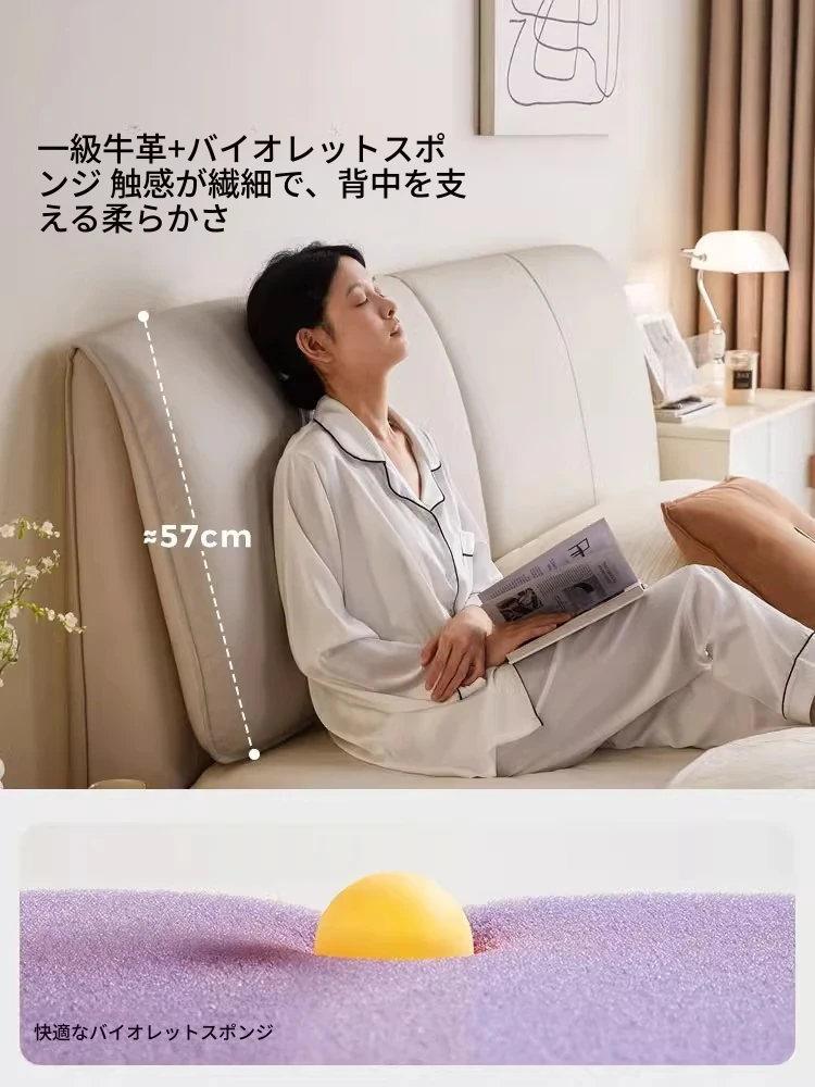 林氏ホーム 現代的な本革製ダブルベッド 1.8メートル 人気の象耳デザイン おしゃれで快適な寝室を演出 高品質な素材使用 林氏家具