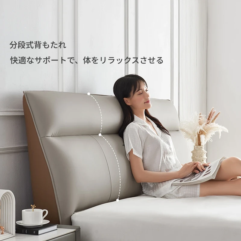 リンシー家居 2メートル大象耳デザインの真皮ダブルベッドフレーム - 快適な主寝室にぴったり!高品質な木材製で、スタイリッシュなインテリアを演出します。
