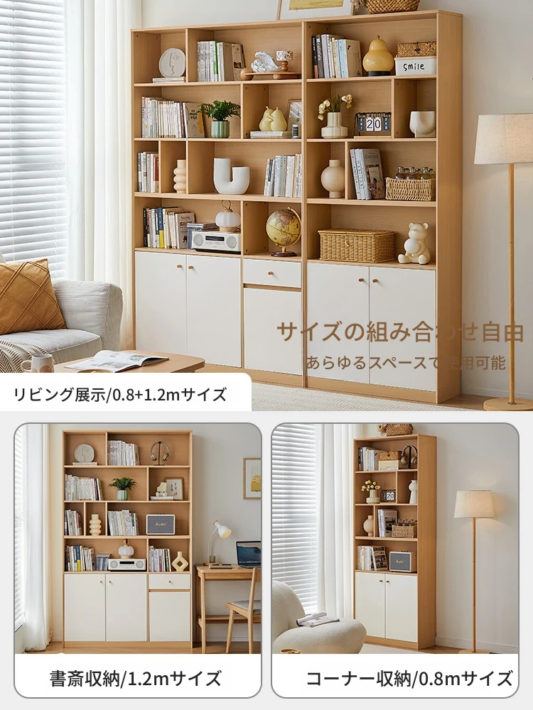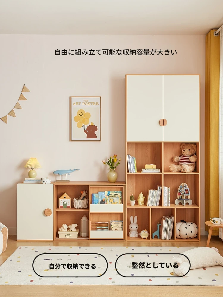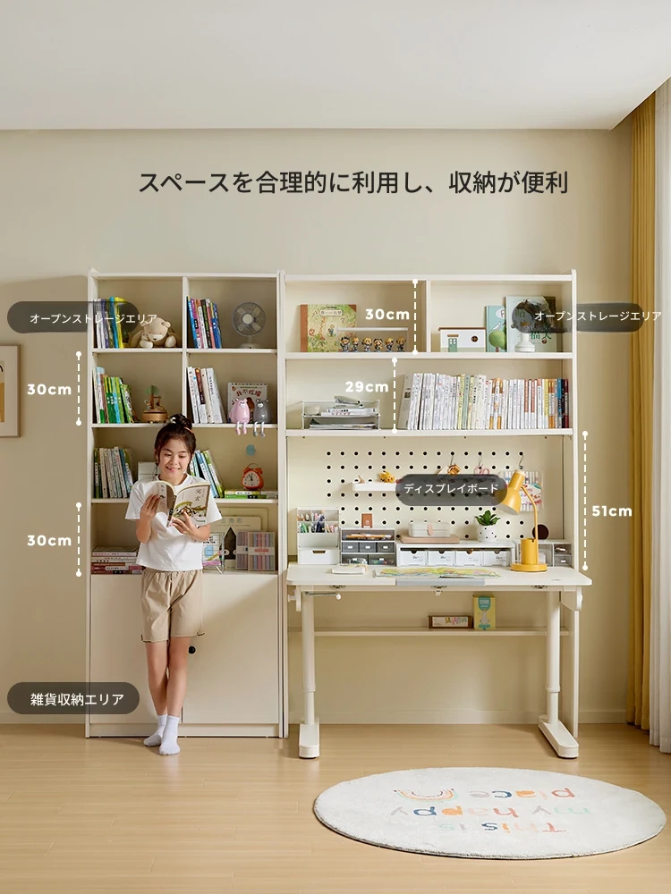 林氏家居 子供向けおしゃれなリビング書棚&スタディデスク - クリームカラーの収納キャビネットで、子ども部屋を明るく整頓!林氏木業の高品質家具で、学びやすい環境を提供します。