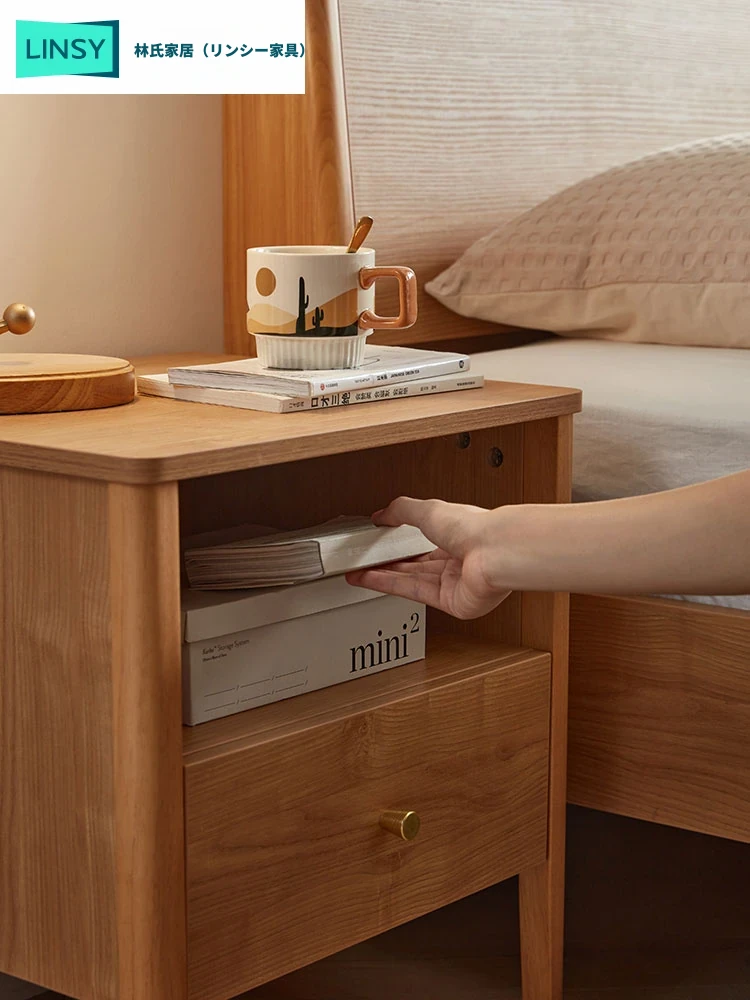 リンシー家具 モダンミニマル スリムナイトスタンド 小型ベッドサイドキャビネット 収納家具 リンシーウッドの極上デザインで、あなたのベッドルームをスタイリッシュに!