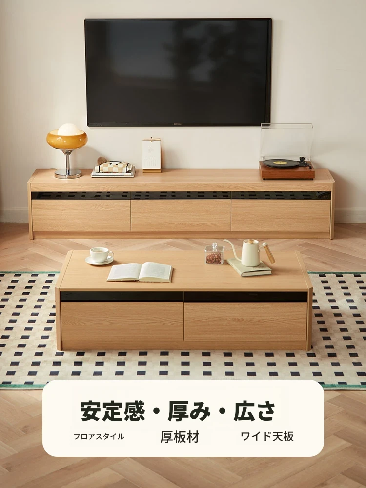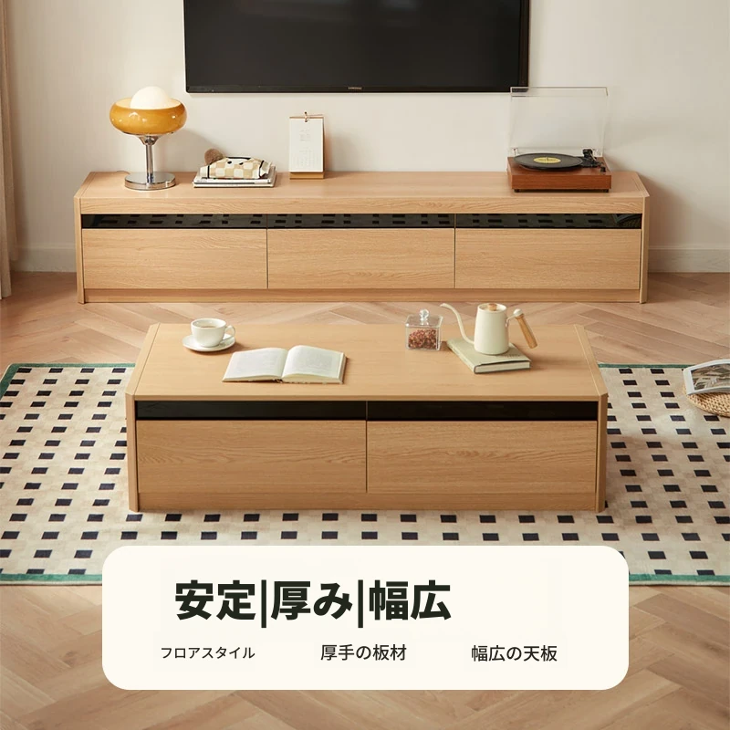 林氏家居LS003高級無垢材テーブル&テレビキャビネット - シンプルでエレガント、日本の居住空間を美しく彩る逸品!