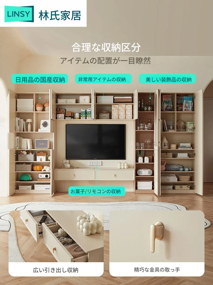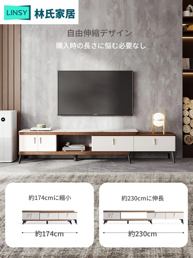林氏ホーム リビングルーム用 無垢材 テレビキャビネット 2025年新作 岩板とオークの収納キャビネット 林氏木業 LH565 - おしゃれで機能的、あなたのリビングをスタイリッシュに演出!