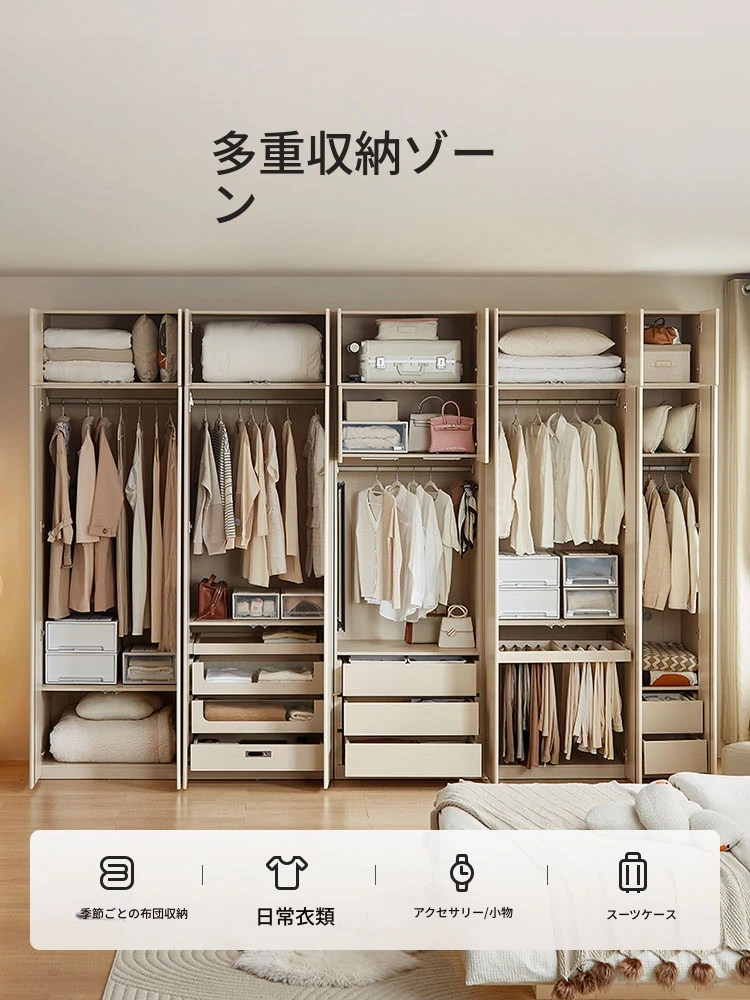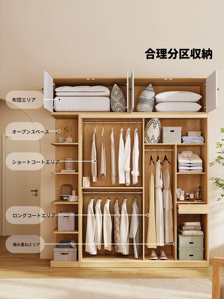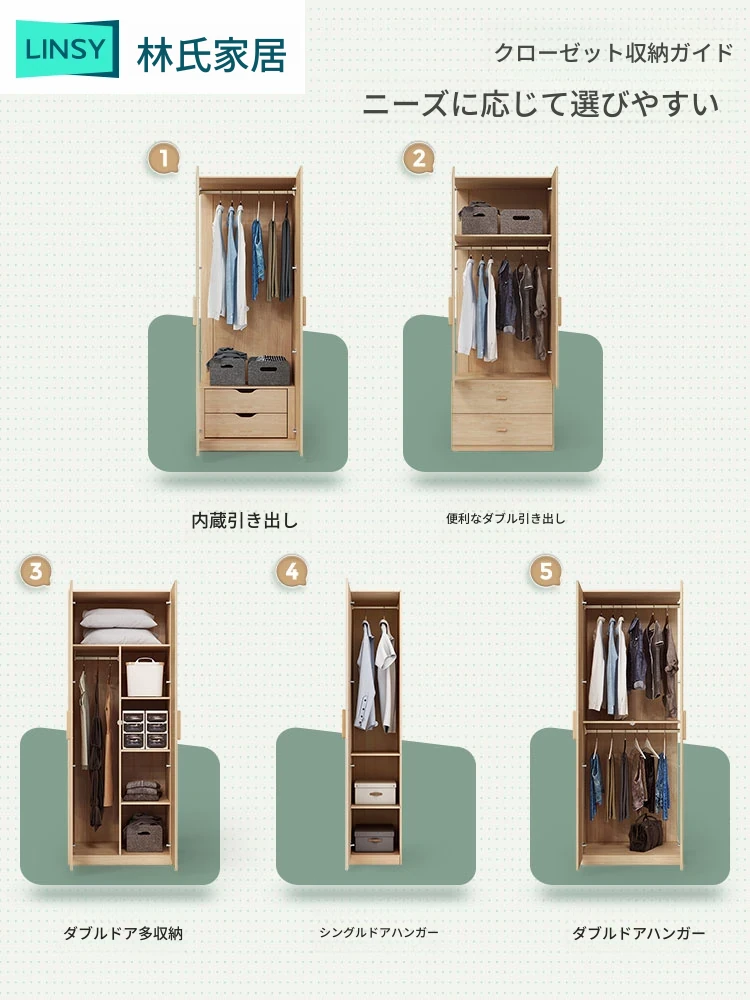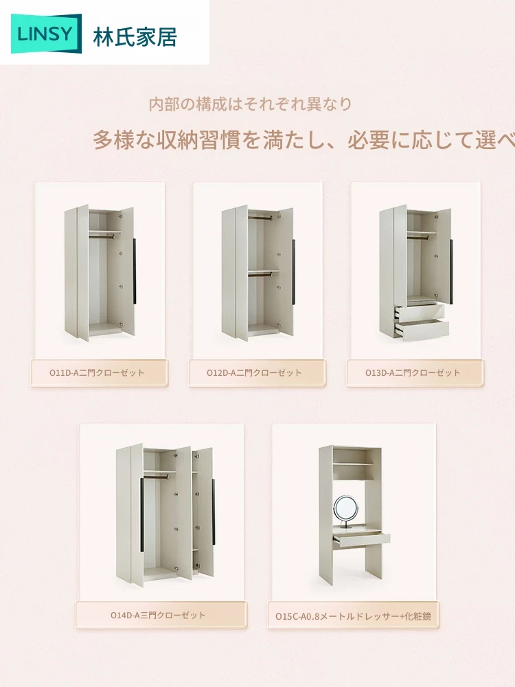 林氏家居のナチュラルウッド風衣装棚|実木製・省スペース収納|小型寝室に最適なコンビネーション家具|スタイリッシュで機能的なクローゼット