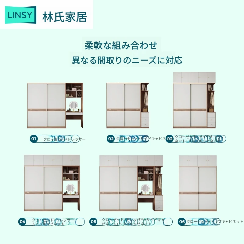 リンシー家居 モダンミニマリスト スライド式 クローゼット デスク一体型 ベッドルーム用 高さまである 衣装ダンス 林氏木業1