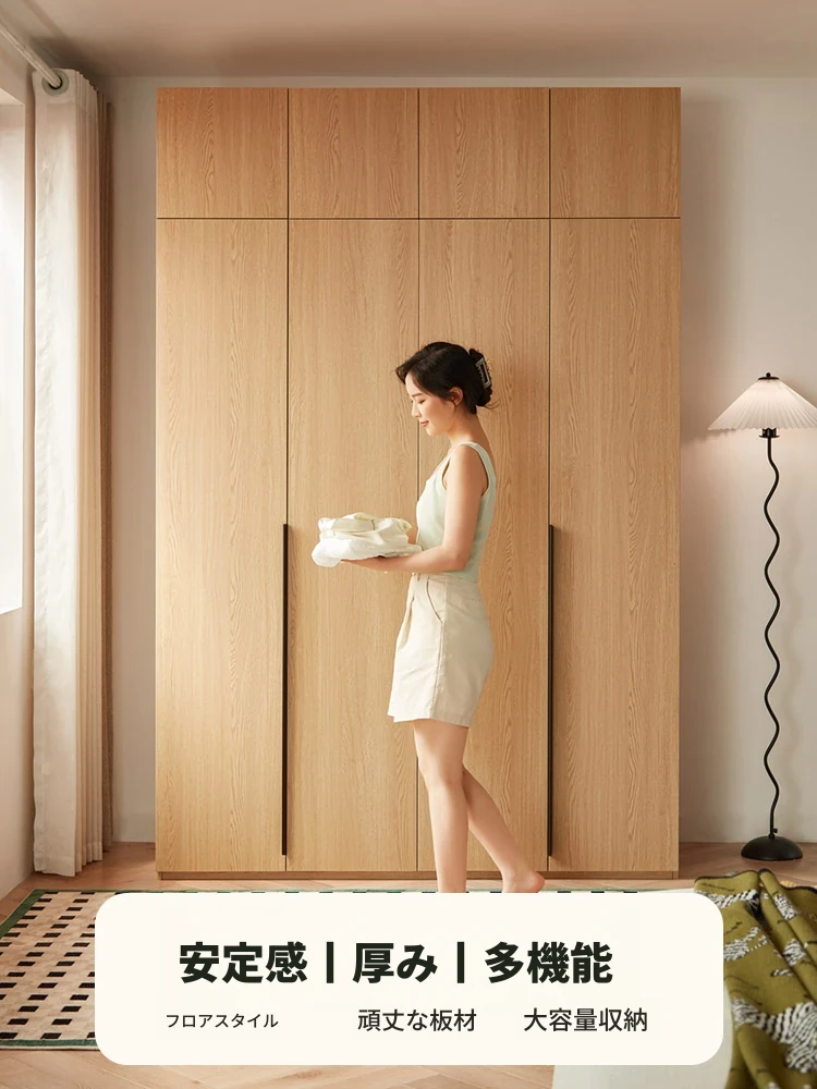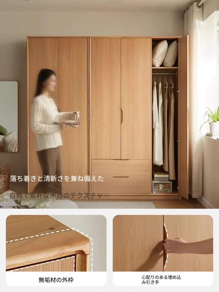 林氏家具のシンプルな4ドアクローゼット - 2025年の新作!自然木の風合いが引き立つ、あなたの寝室にぴったりの収納スペース。快適な生活空間を演出します!