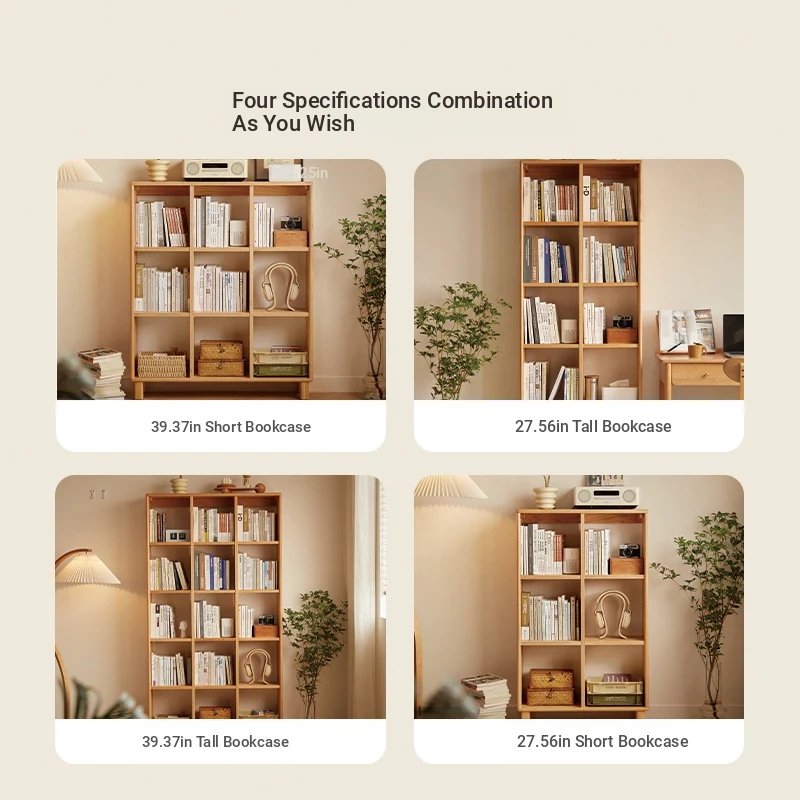 Linsy's Modern Japanese Solid Oak Low Bookshelf - Stylish Storage Unit for Living Room & Staircase, Perfect for Organizing Your Space!