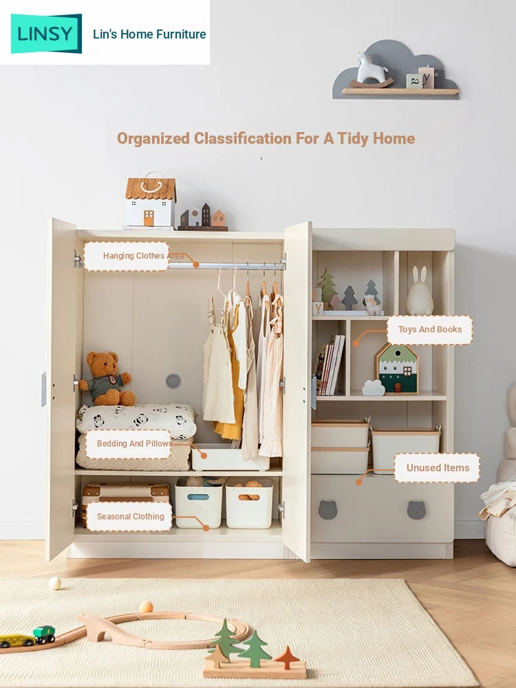 LINSY Modern Minimalist Wooden Children's Wardrobe - Stylish Storage Solution for Boys' Rooms, Perfect for Home Use - Model LH137