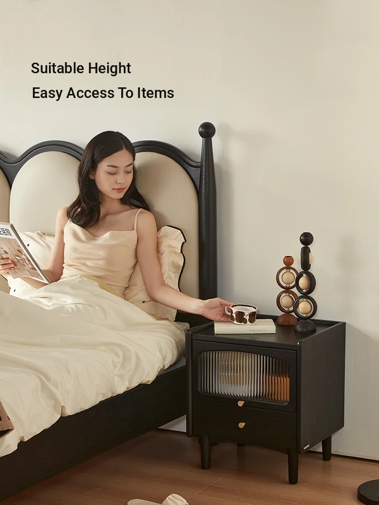 "Lin's Home Elegant Cream-Style Solid Wood Nightstand - Trendy Compact Storage Cabinet (Model LH094B1) for Modern Living Spaces"