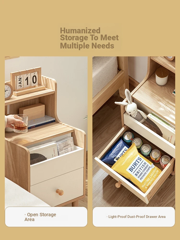 Linsy Modern Minimalist Small Nightstand with Multi-Layer Drawers - Stylish Storage Solution for Your Bedroom, Linsy Wood UE1B