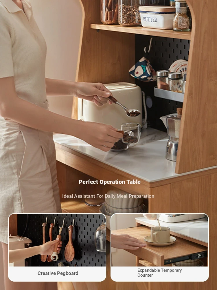 Lin’s Home Oak Solid Wood Sideboard with Dual-layer Rock Slab Wine Cabinet - 2024 New Design, Stylish Perforated Board for Modern Living Rooms