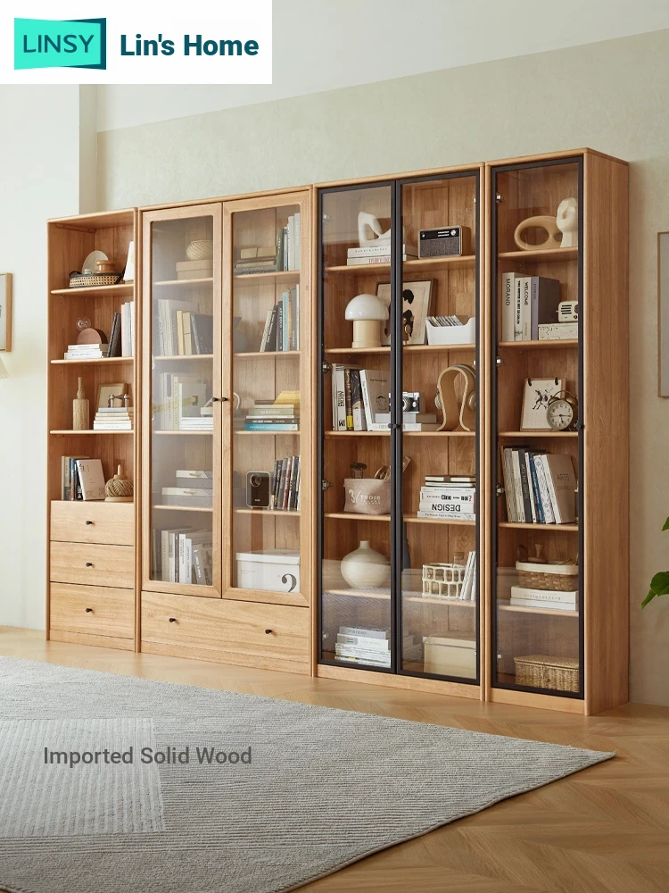 "Lin's Design Solid Wood Bookshelf – Elegant Freestanding Glass-Door Bookcase for Living Room and Home Office – Perfect for Organizing Your Reading Collection"