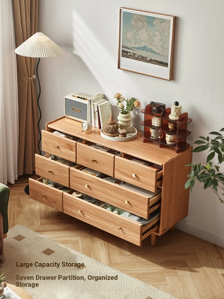 Linsy Home Nordic Solid Wood Seven-Drawer Dresser – Stylish Bedroom Storage Solution with Ample Space for Organizing, Perfect for Wall Placement | Linsy Woodworks VR1E