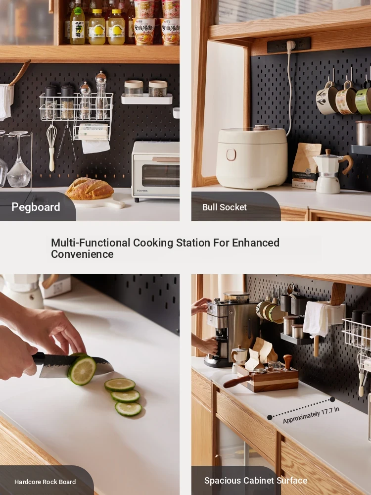 Linsy Home Nordic Style Dual-Layer Solid Wood Sideboard - 2024 New Model with Stone Surface, Wall-Mounted Storage Cabinet by Linsy Furniture