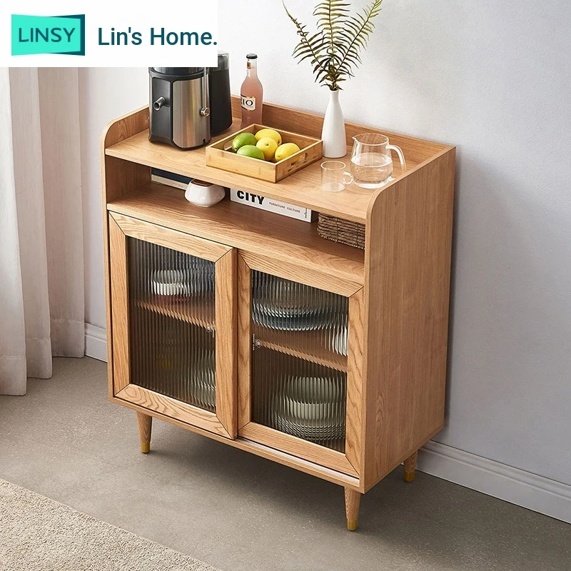 Linsy Scandinavian Solid Wood Sideboard with Storage – Stylish Tea and Snack Cabinet for Kitchen and Living Room, Perfect for Wall Placement, Modern Design, Ideal for Organizing Your Space
