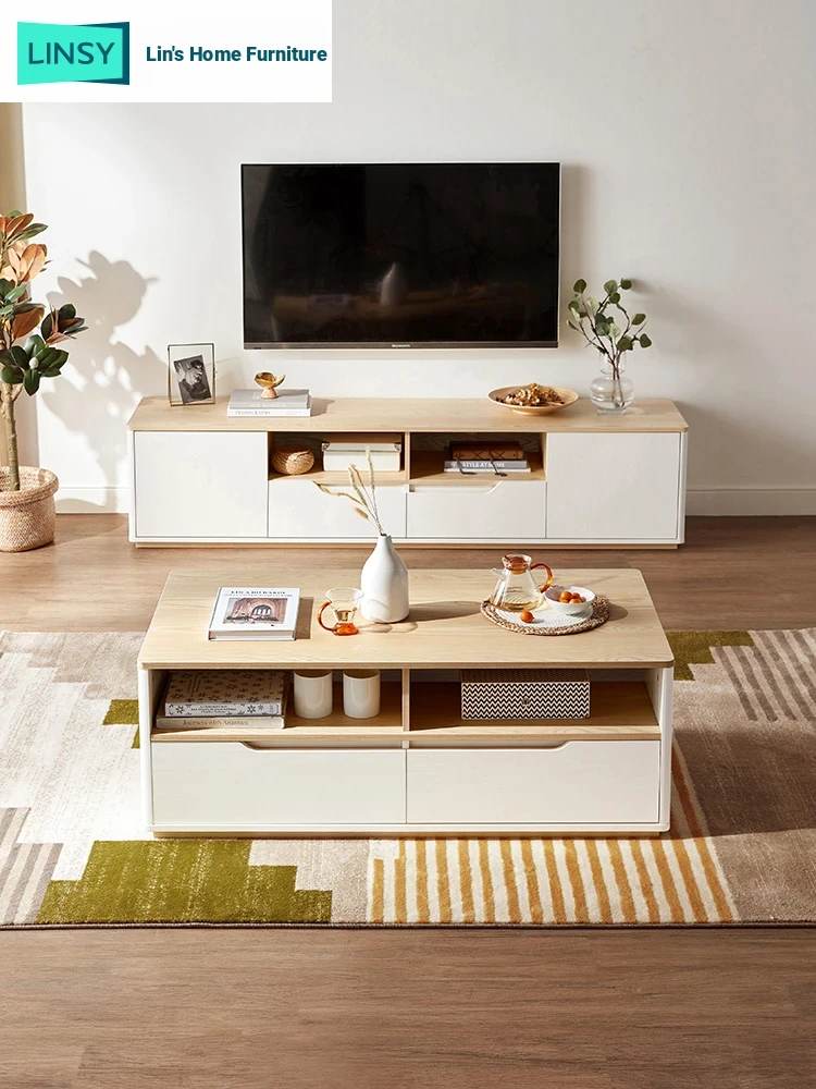 Linsi Home New Chinese Style Solid Wood TV Cabinet and Coffee Table Set for Living Room - 2024 Collection, White Ash Wood Storage Solutions by Linsi Woodworks