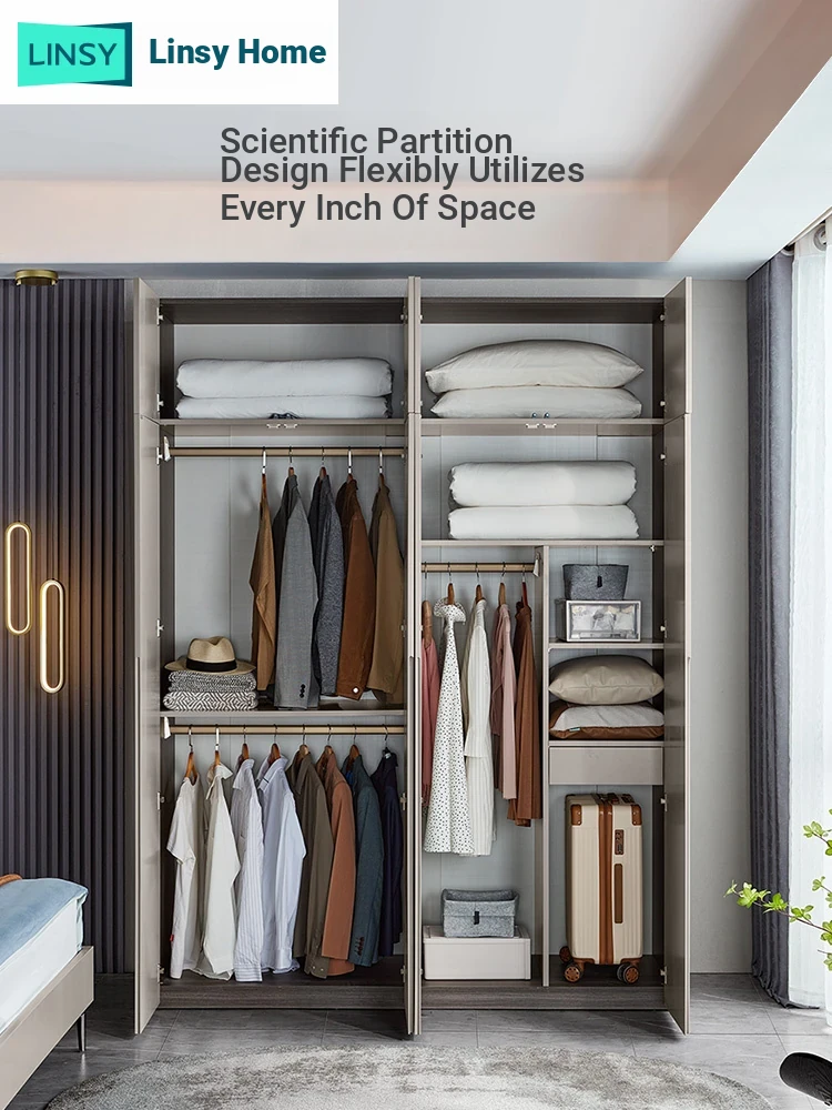 Linsy Italian Minimalist Wardrobe – Stylish Storage Cabinet for Small Bedrooms, 4-Door Closet Ideal for Home Organization (Model KC1D)