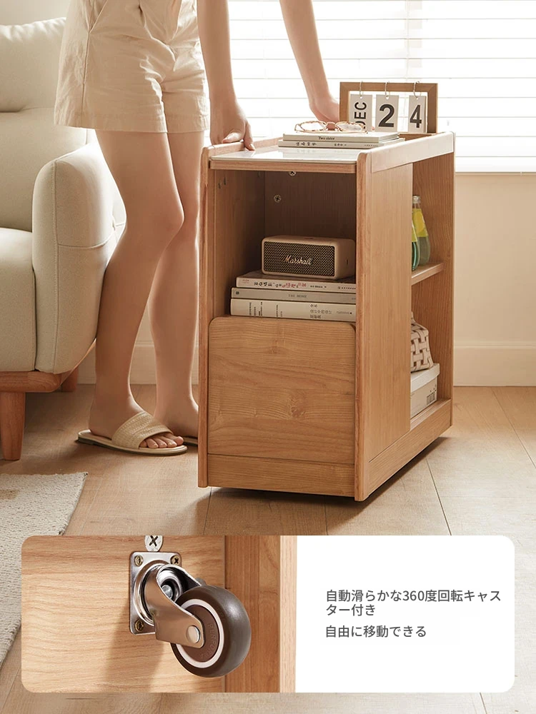 リンシ家居のオーク製小型サイドテーブル - 最新2025モデル、リビングにピッタリの移動可能なティーテーブル!おしゃれで使いやすく、あなたの空間を引き立てます!
