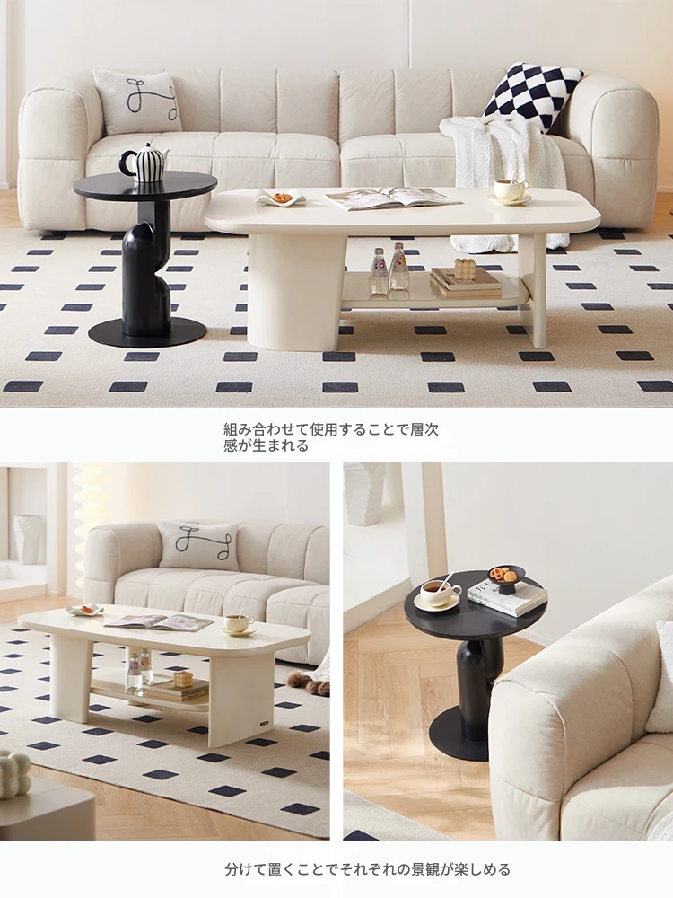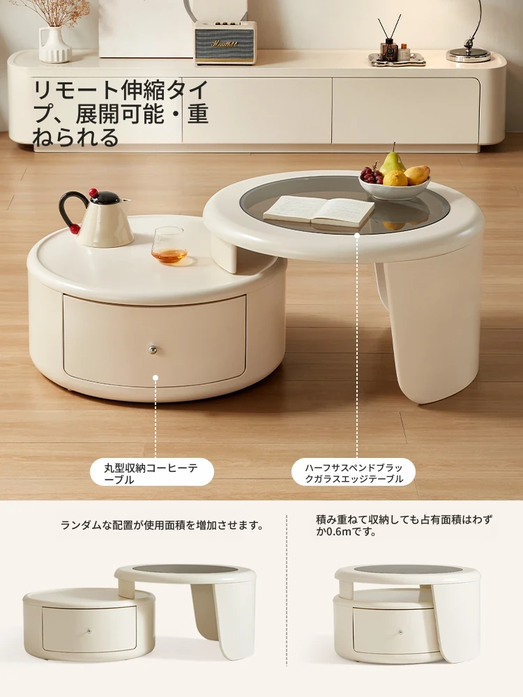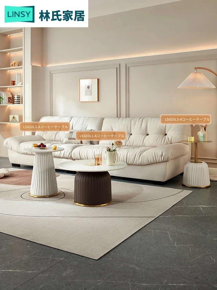 林氏家居のクリーミーラグジュアリーな円形ロックテーブルセット - おしゃれなリビングにぴったりのティーテーブルとテレビ台のコンビネーション!上質な素材で、居心地のよい空間を演出します。