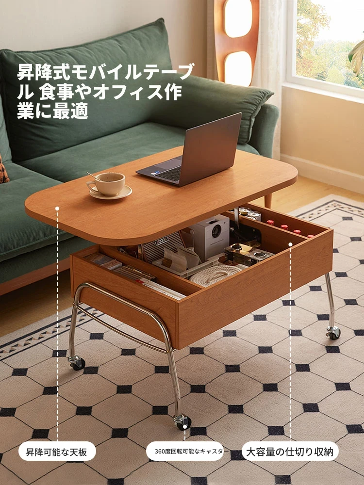 リンシー家具 中古 黒色昇降式移動可能なコーヒーテーブル サビ風 リビング用 家庭向け サイドテーブル コンパクト設計 木製 どんなお部屋にもフィット!シンプルでスタイリッシュな空間を演出します。