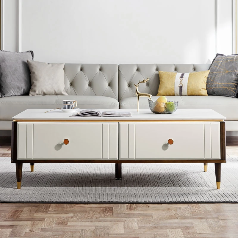 リンシハウジングリビングルーム用クリーム風コーヒーテーブル、小型住宅向けのラグジュアリーな高級感漂う小茶卓、リンシ木業RS4Lモデル【シンプル&スタイリッシュ】。