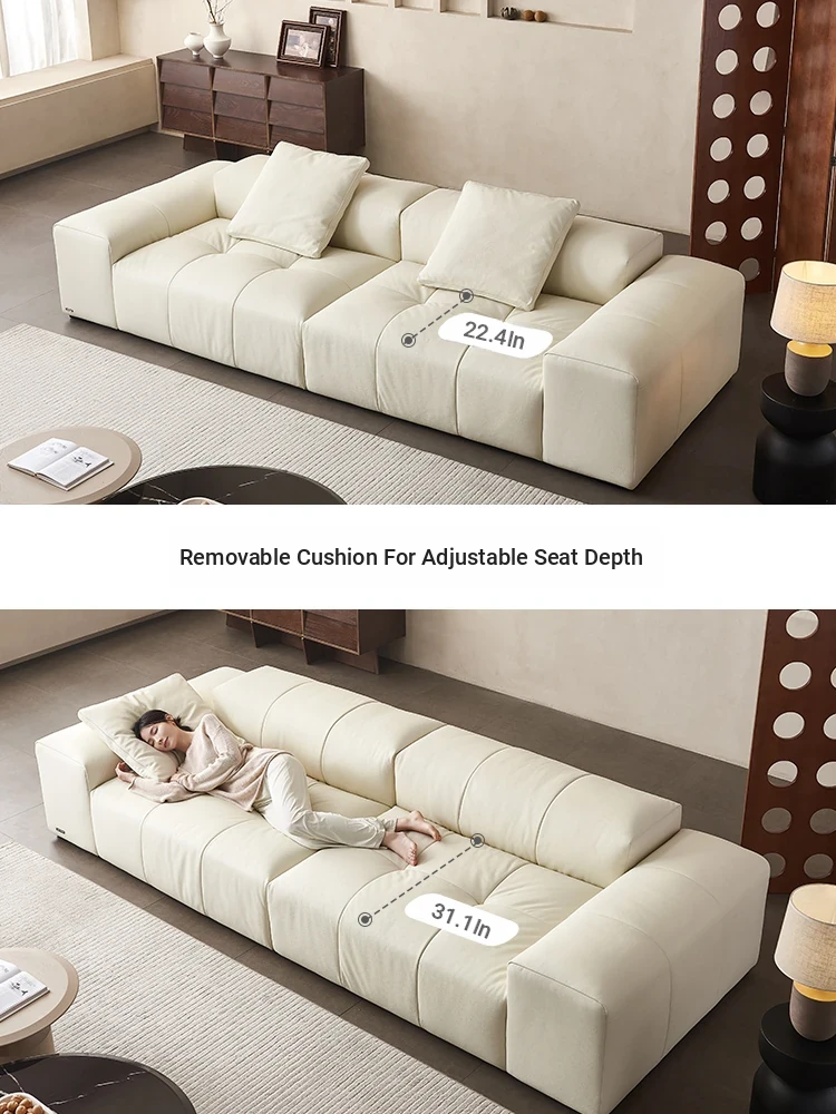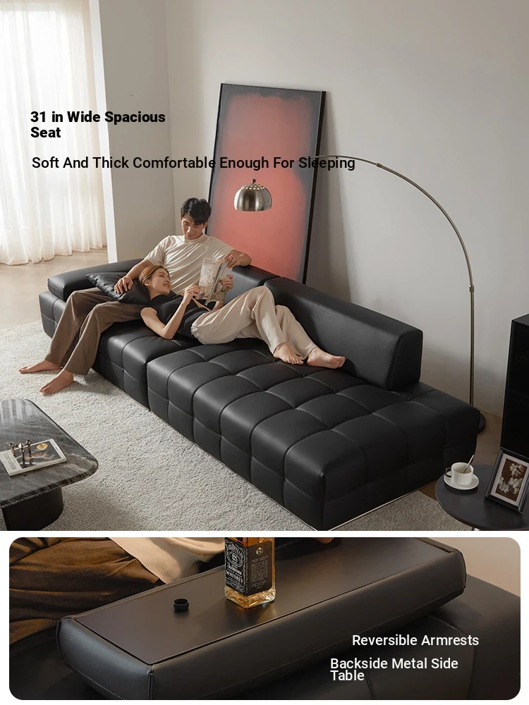 **Lin's Living Pixel Sofa - Italian Minimalist Style, New Tofu-Block Genuine Leather Sofa for Modern Living Rooms, Lin's Wood Products PS994**