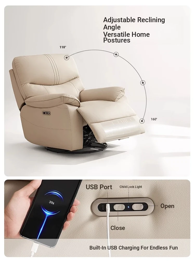 Lin's Home Silicone Leather Multifunctional Electric Recliner Chair - Cozy Single Sofa for Living Room, Model 085