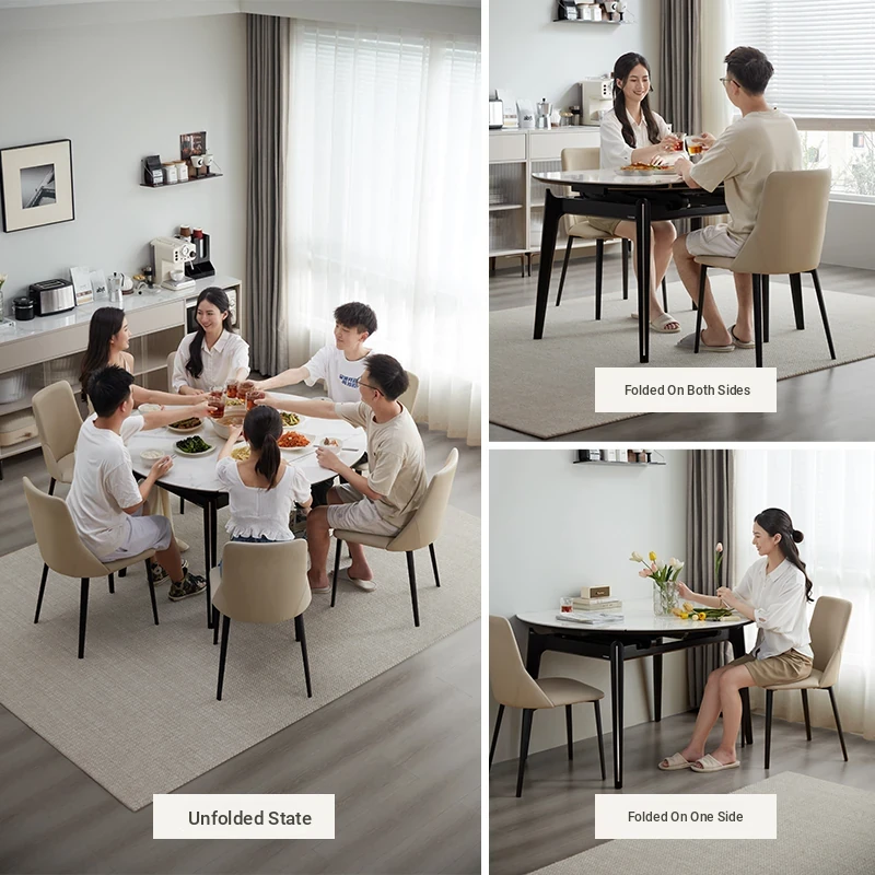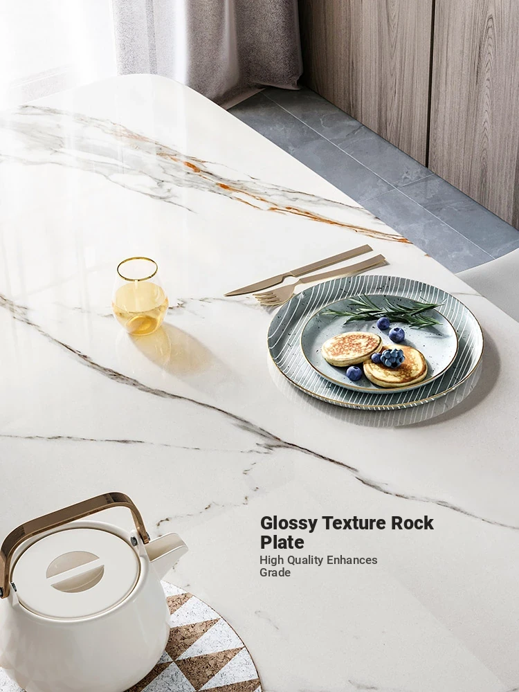 Lin's Home Modern Minimalist Expandable Rock Plate Dining Table - Stylish Island Table for Home Use, Perfect for Family Meals and Gatherings