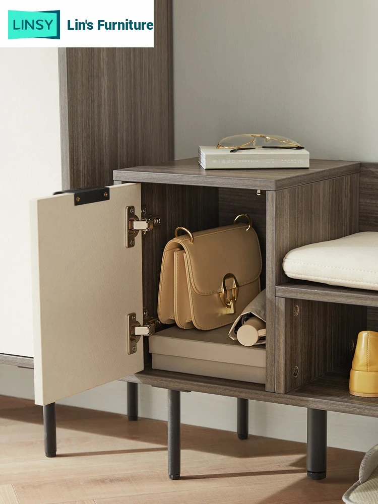 "LINSHI Home Entryway Storage Cabinet - Stylish High-Low Shoe Organizer for Small Spaces, Perfect for Your Home, MF1N"