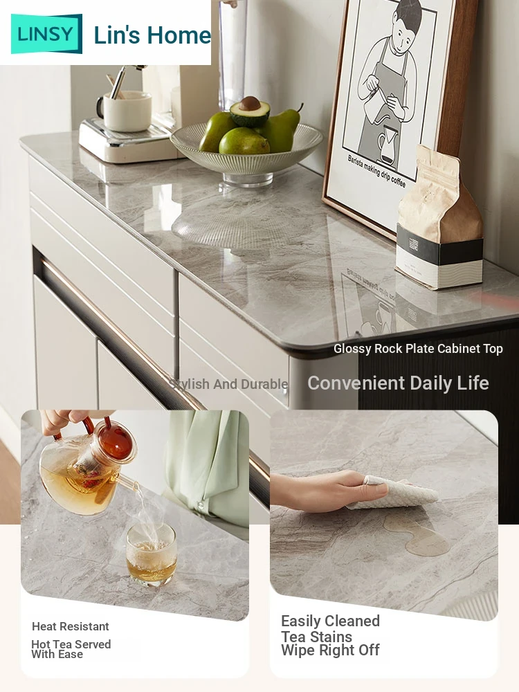 Lins Home Modern Minimalist Coffee Cabinet - Stylish Sideboard with Rock Panel Design for Storage & Organization in Your Home, Model LS999