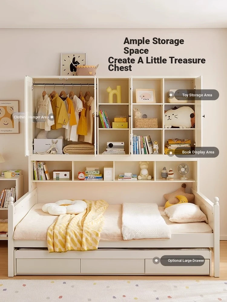 Linsy Home Kids' Bedroom Bed – Stylish Tatami-Style Twin Bed for Girls, Perfect for Small Spaces with Integrated Storage & Wardrobe – New Design!