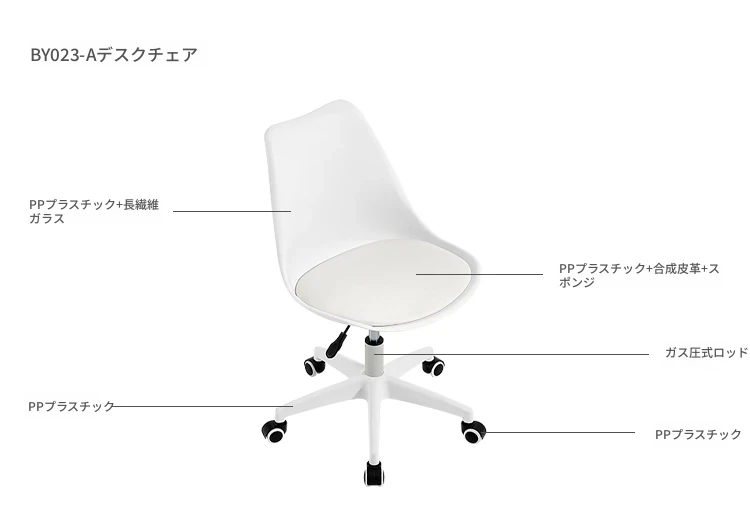 【ホワイト】BY023-Aデスクチェア