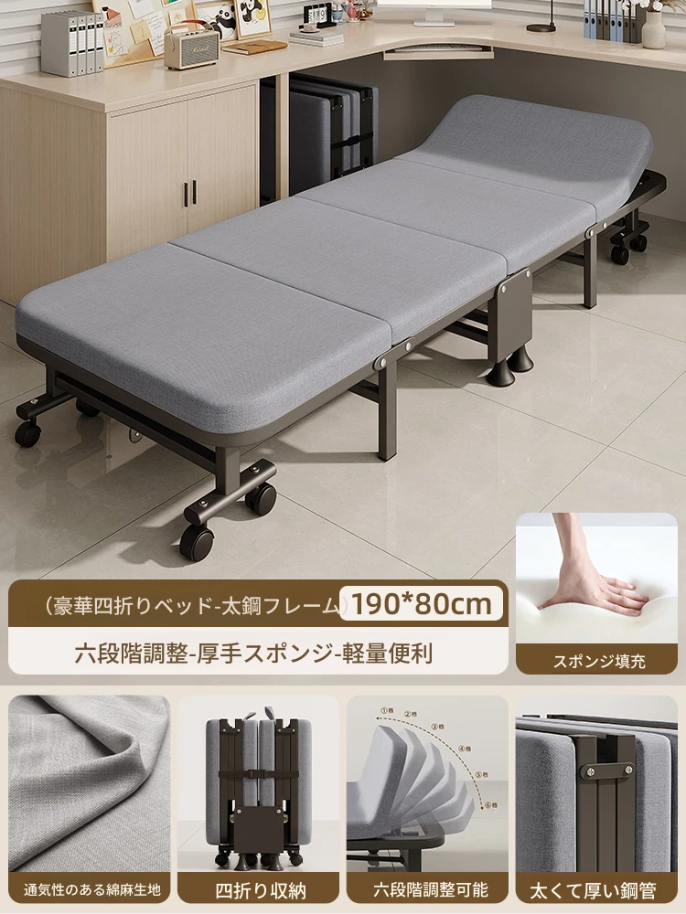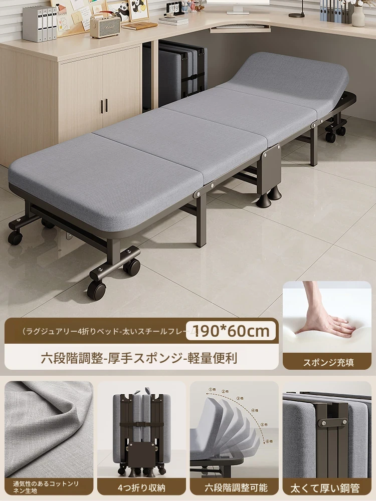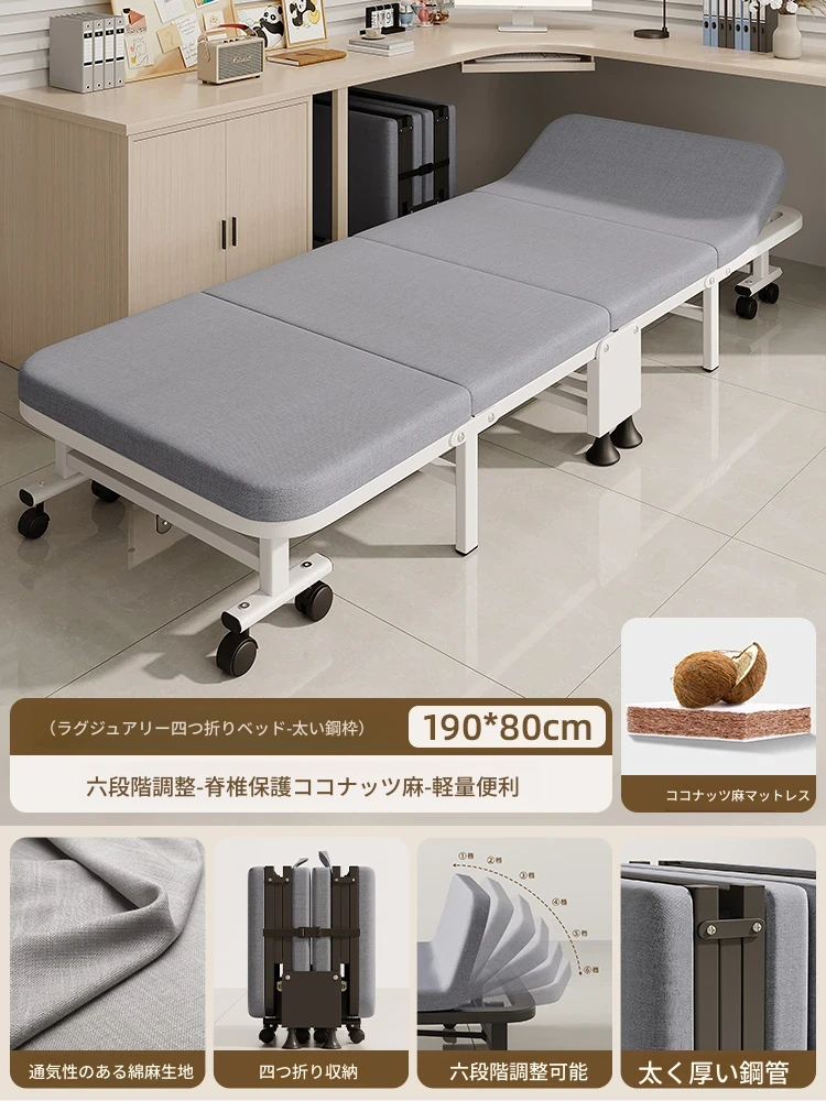 オフィス昼寝に最適!折りたたみシングルベッド・リクライニングチェア - 家庭用簡易版、持ち運び便利、病院の付き添いにも最適な快適な昼寝アイテム!