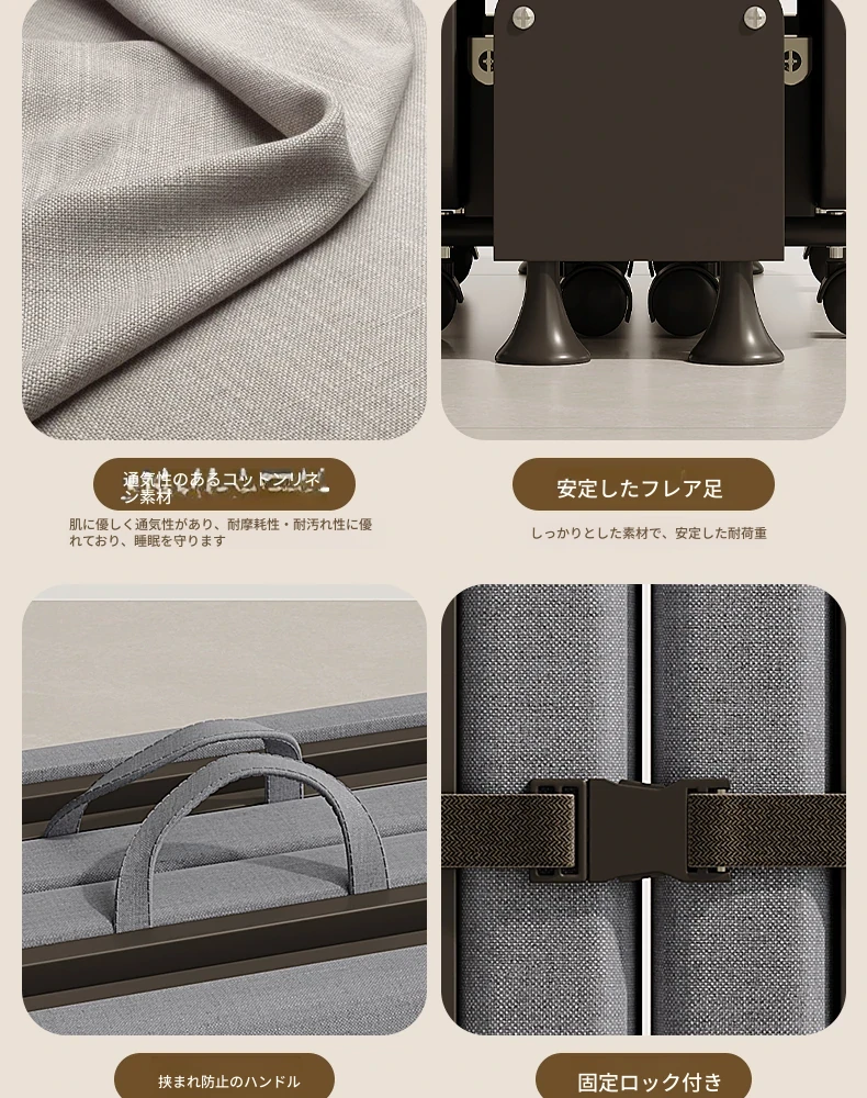 【6段調節♥防汚テクノロジー布】豪華四折ベッド-太くてスチールフレーム190*70-カーボンホワイトフレーム