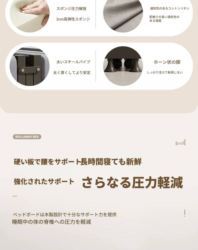 ⭐昼寝必需品♚強化フレーム⭐180*80-厚手スポンジ-カーボンホワイトフレーム